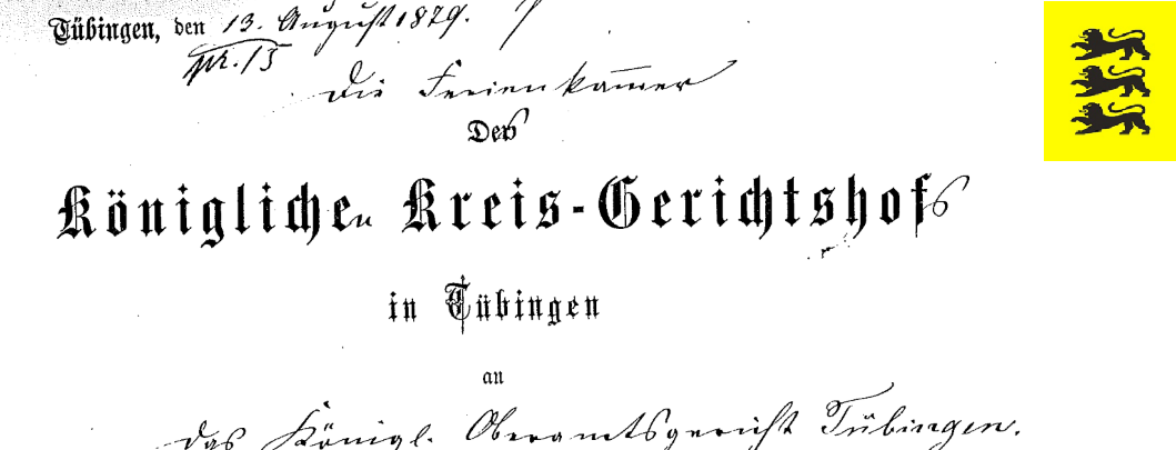 Informationen zum Kreisgerichtsjubiläum in Württemberg (Festschrift Tübingen/Ellwangen/Ulm/Esslingen)